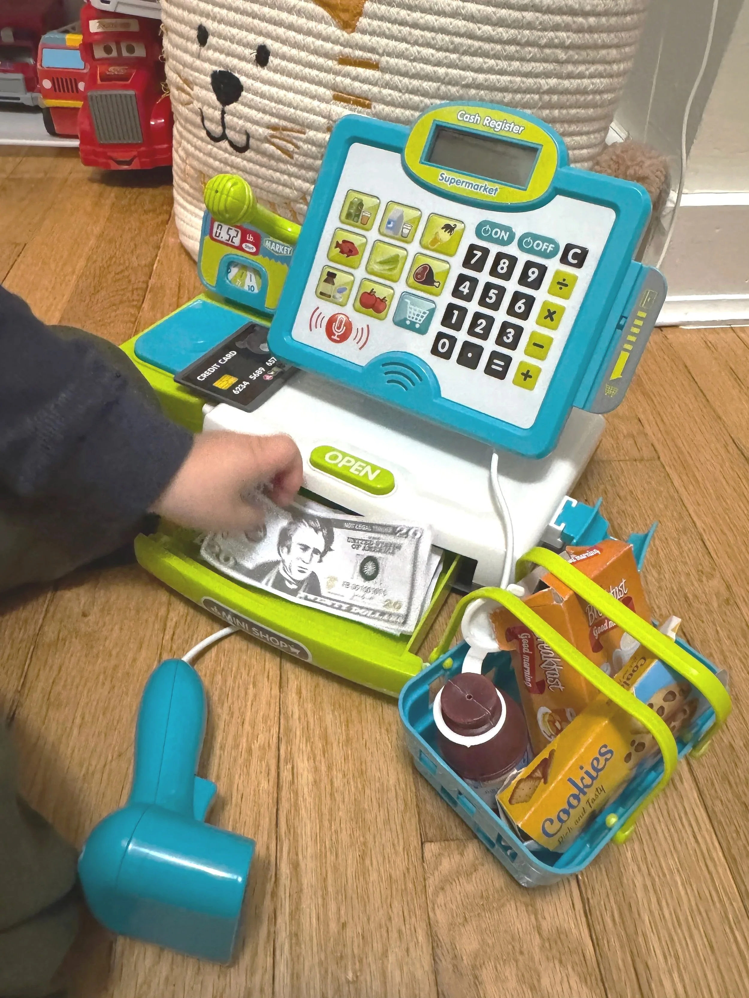 A pretend play cash register lets toddlers explore everyday experiences through playful imitation. They love pressing the buttons, handling “money,” and pretend to play shopping. This kind of play sparks their imagination and encourages them to talk and interact, making learning feel natural and playful.